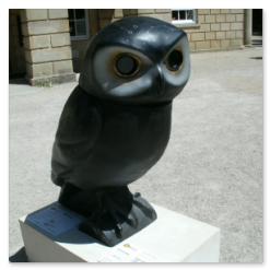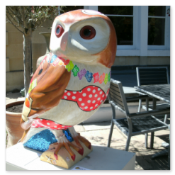 Our first view of the owls, and the first bird sculptures we had seen